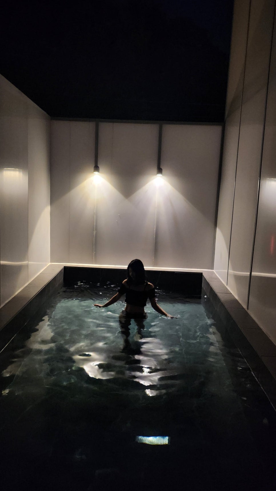 야외 수영장도 너무 낭만적이라 안 찍을 수 없었어요