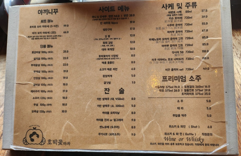 호박꽃마차는 체인점이구요 프리미엄 야끼니꾸 와규 전문점 입니다