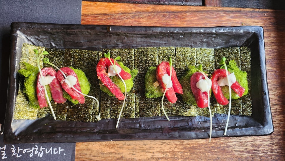 아이들이 육회를 좋아해서 맛본 육회김밥입니다 !