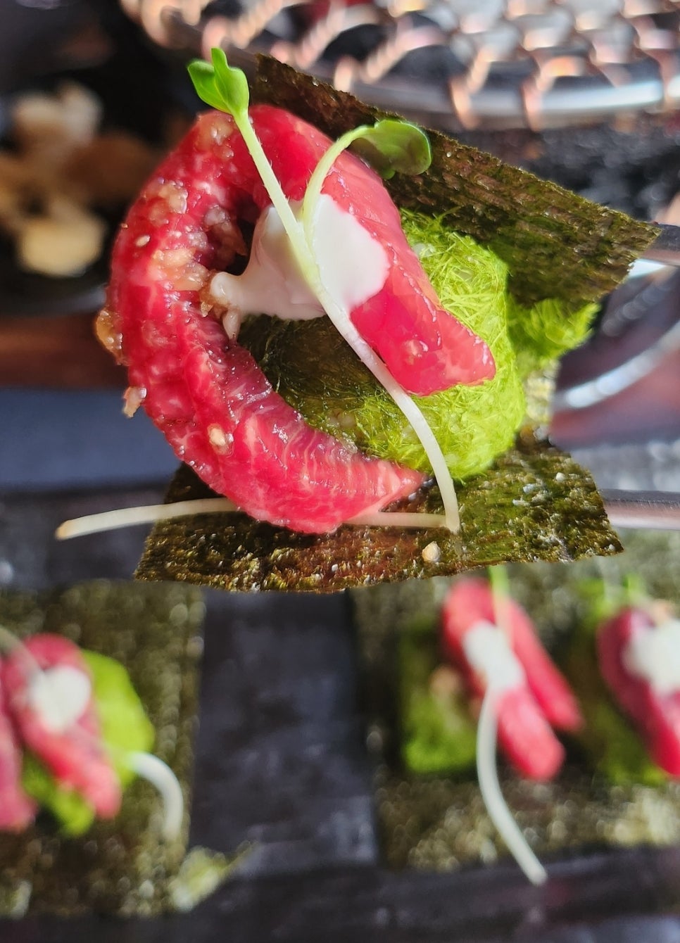 소고기5종과 곁들여 먹는 채소 와사비가 나왔습니다 :)