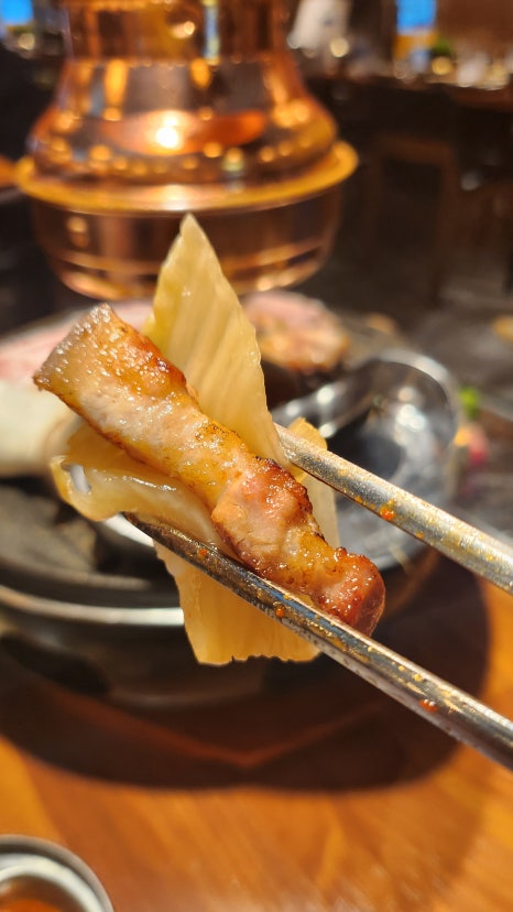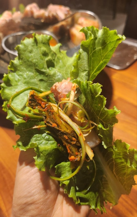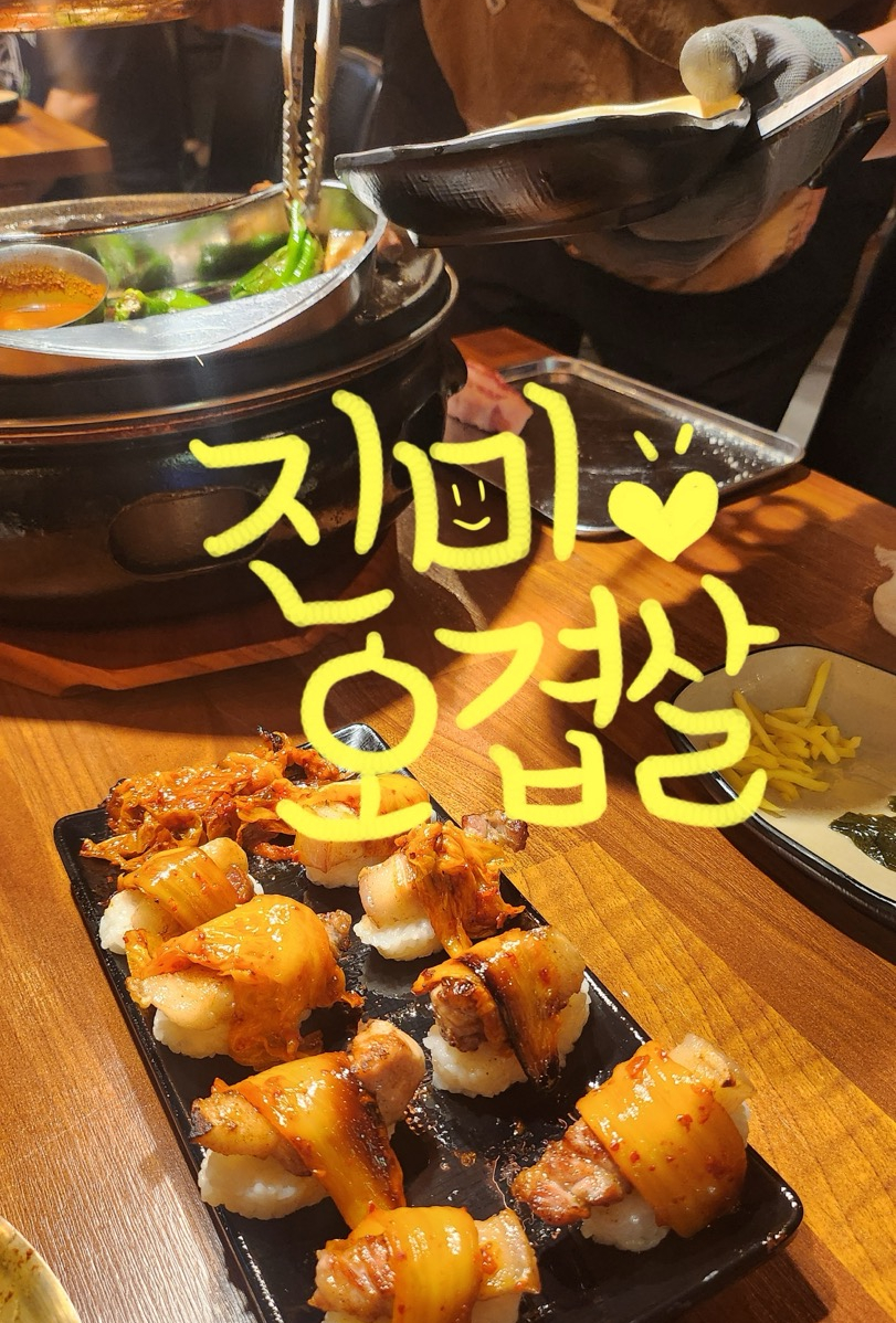 오겹살에 구운김치에 와사비 살짝 올려서 먹으면 맛나요