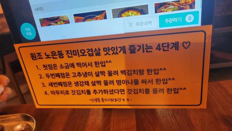 진미오겹살 맛있게 즐기는 4단계 방법이 나와있어요~~